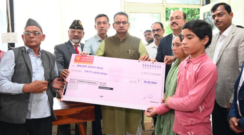 सैनिक कल्याण मंत्री गणेश जोशी ने मृतक उपनलकार्मिक के पिता को सौंपा 50 लाख का चैक