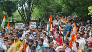 रूद्रपुर: जिलाधिकारी कार्यालय रुद्रपुर में कांग्रेसीयो द्वारा प्रदेश में बिगड़ी कानून व्यवस्था, बढ़ते महिला अपराधों, भ्रष्टाचार, बाजपुर के 20 गांव का मुद्दा सहित कई मुद्दों को लेकर जिले भर के कांग्रेसियों ने सोमवार को जोरदार प्रदर्शन करते हुए कलेक्ट्रेट में कूच किया।